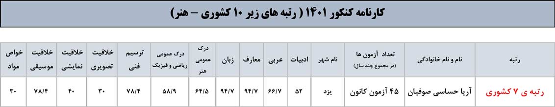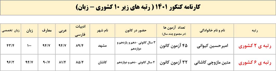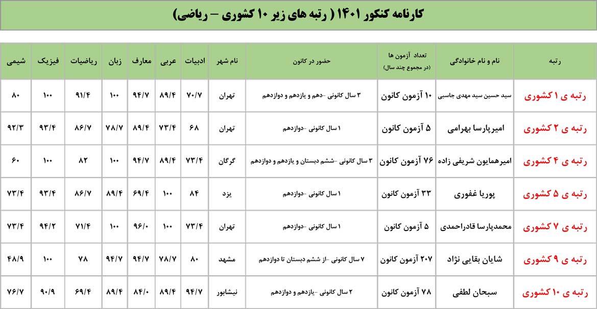 کارنامه کنکور رتبههای برتر کنکور1401 -تجربی و ریاضی و انسانی