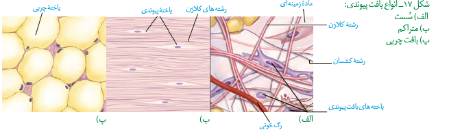 الف) همه این بافت ها، یاخته ها و بافت های مختلف را به هم پیوند می دهند.