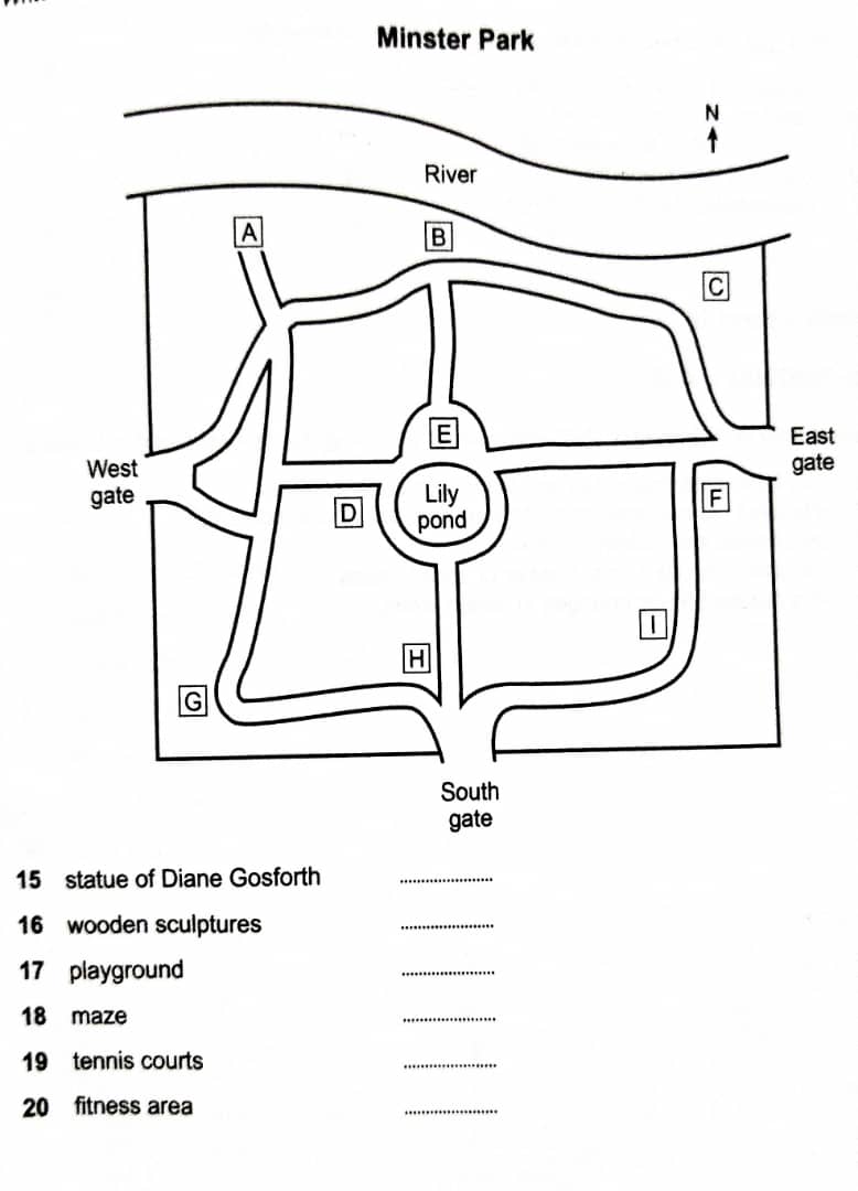 به عنوان مثال باید بگویید زمین تنیس (Tennis Courts) در کدام ناحیه روی نقشه(A, B, C, D, E, F ,G, H , I) است.
