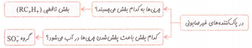پاک کننده های غیر صابونی قدرت پاک کنندگی بیشتری نسبت به صابون دارند و در آب های سخت نیز خاصیت خود را حفظ می کنند. زیرا گروه -SO_3^- برخلاف -CO_2^- با یون های Ca^+وMg^(2+) موجود در آب سخت، رسوب نمی دهد.