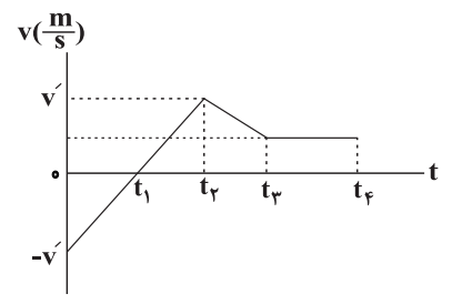 در شکل زیر ، نمودار سرعت – زمان جسمی که بر روی خط راست حرکت می کند رسم شده است . با توجه به نمودار ، در کدام بازه زمانی مشخص شده ، کار برایند نیروهای وارد بر جسم مثبت است ؟