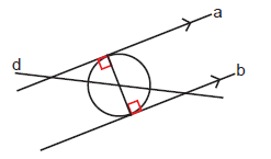 الف)خط d از مرکز دایره میگذرد و دو خط a و b بر قطر دایره عمودند.
