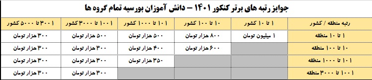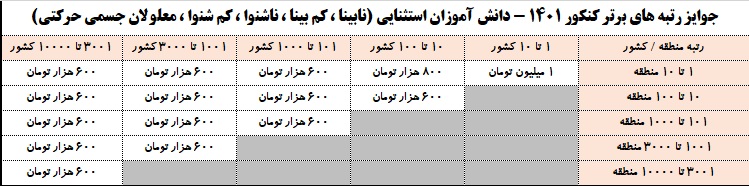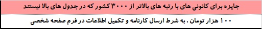 توجه: هر کدام از دانش آموزان کانونی ، می توانند فقط یکی از جوایز را دریافت کنند. (جایزه ای که مبلغ بیشتری دارد)