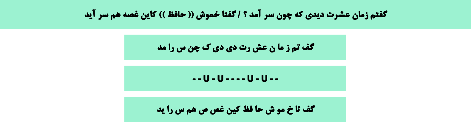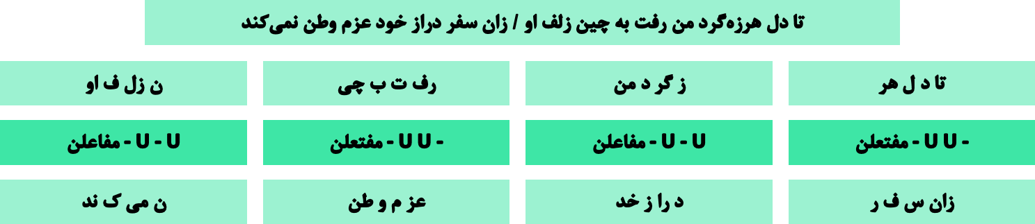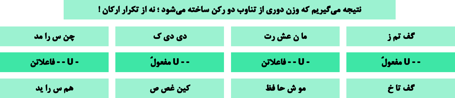 ⭐ این وزن بر پایه برش هجایی (( سه تایی – چهار تایی )) بدست آمده ؛ اگر هجاها را به شیوه (( چهار تایی – سه تایی ))
