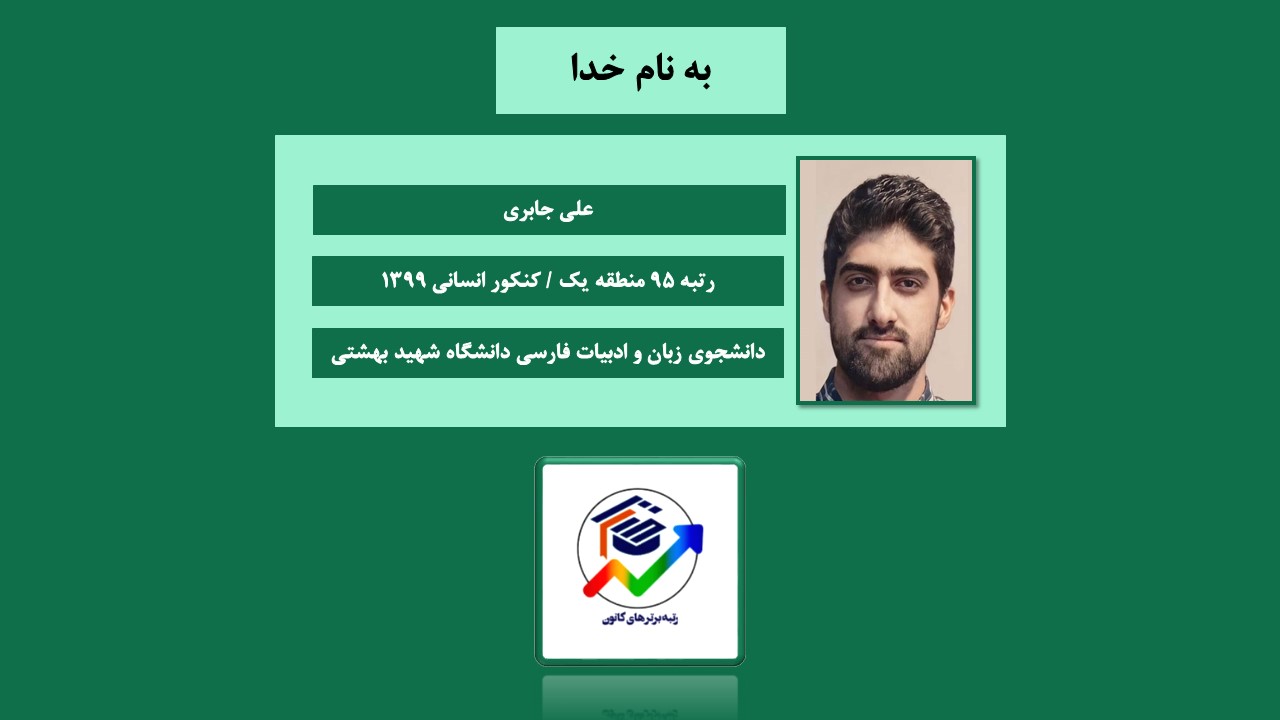 علی جابری - دانشجوی رشته زبان و ادبیات فارسی دانشگاه شهید بهشتی