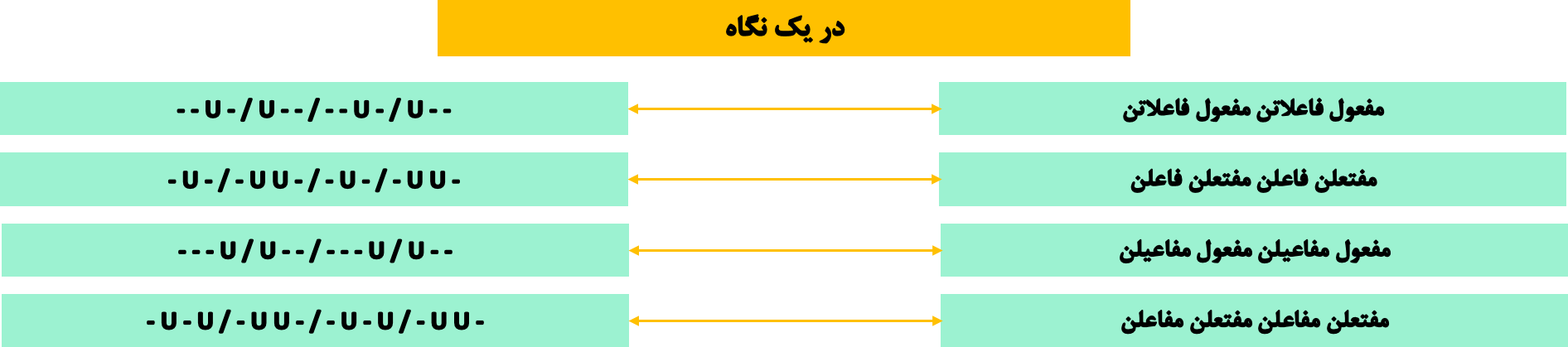 ⭐ هر مصراع به دو پاره تقسیم میشود . ( مفعول فاعلاتن / مفعول فاعلاتن )