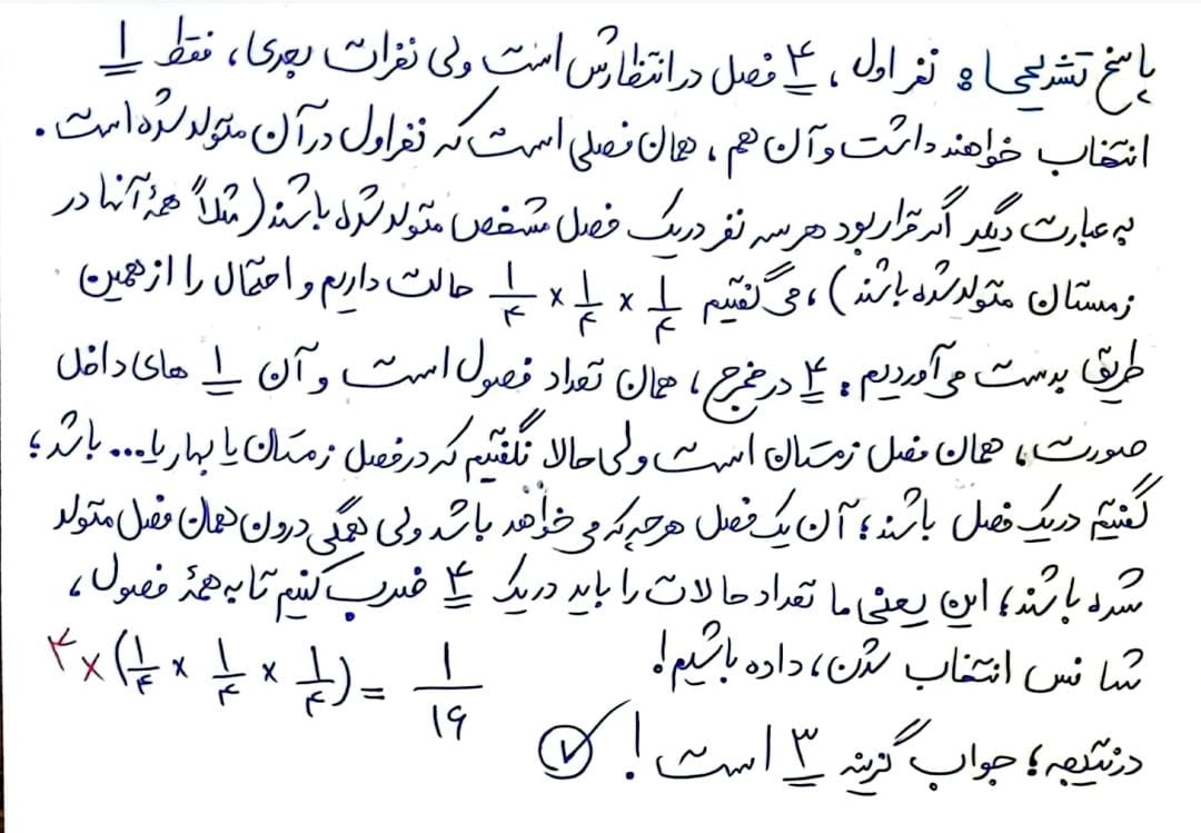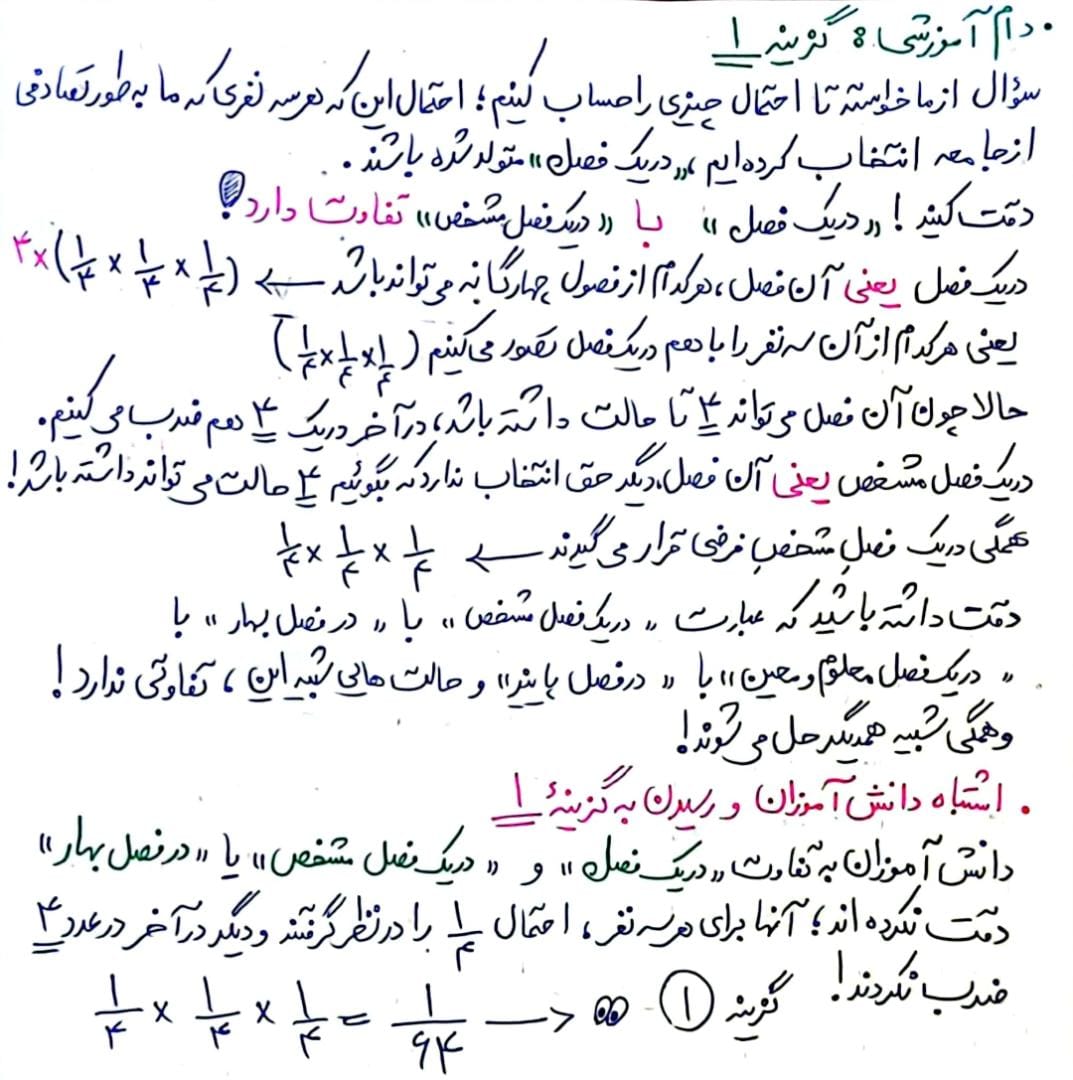 توجه داشته باشید که اگر بحث فصل مطرح بود ، در محاسبه تعداد کل حالات ، از عدد 4 استفاده میکنیم .