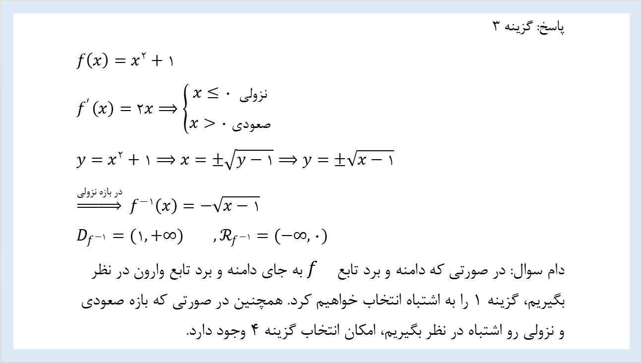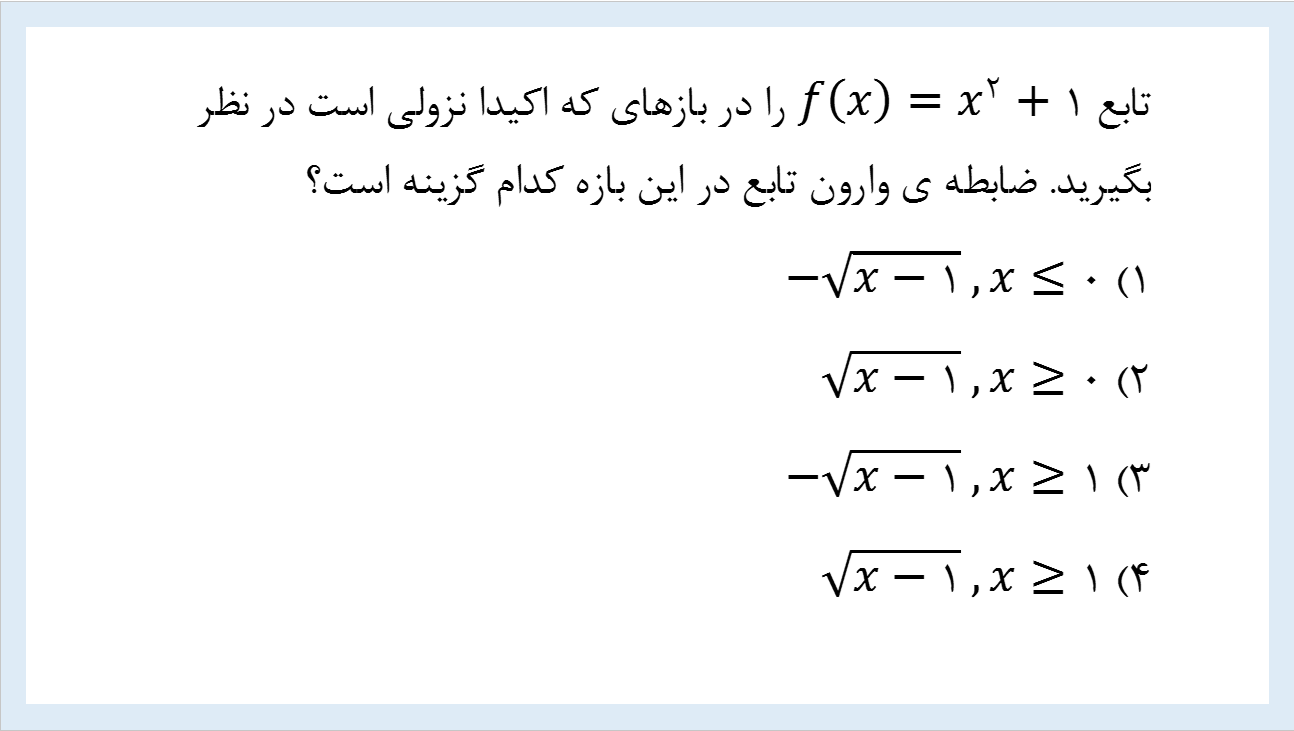 این تست از مبحث یکنوایی توابع و تابع وارون طراحی شده است.
