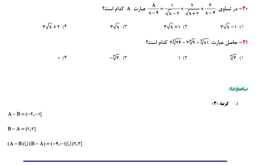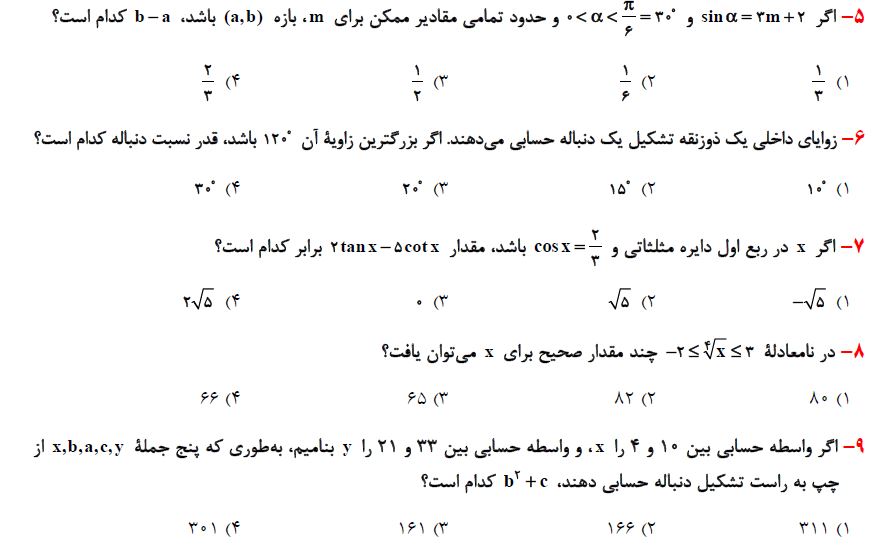 فصل 1 2 3 ریاضی دهم - آزمونک - مهدیار وهاب زاده