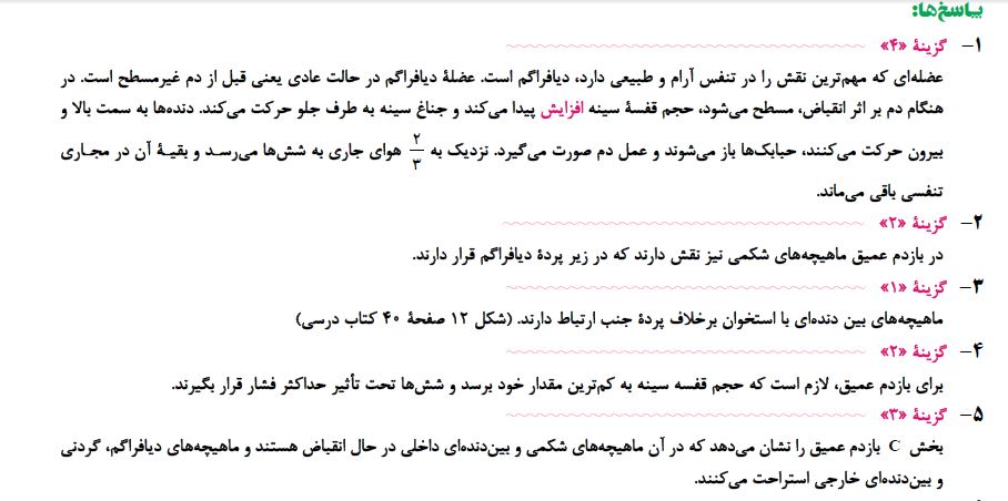فصل 1 2 3 تا پایان بخش مبادله ای زیست دهم - فاطمه صمدی -آزمونک