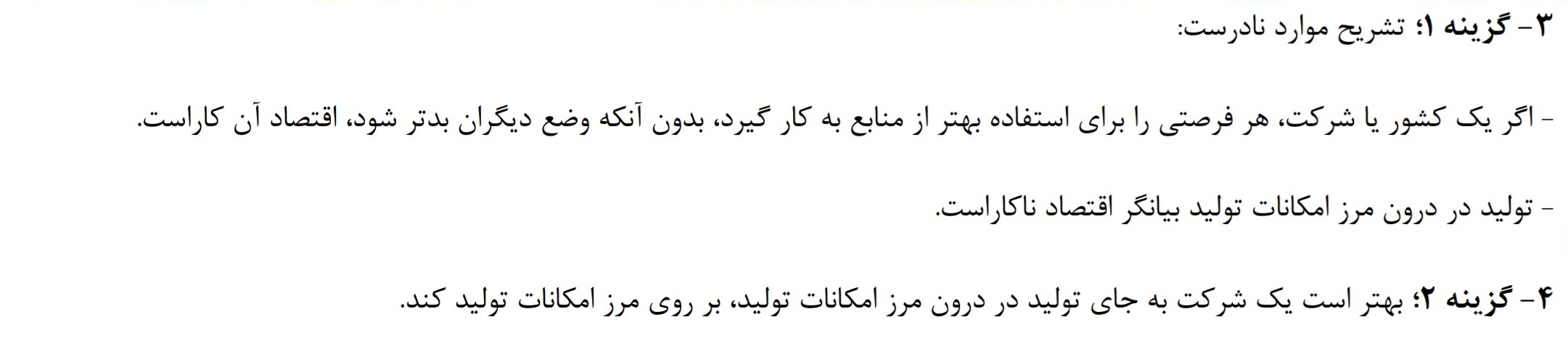 4- عبارت کدام گزینه در ارتباط با مرز امکانات تولید نادرست است؟ (متوسط – آزمون کانون، 12 شهریور 1400)