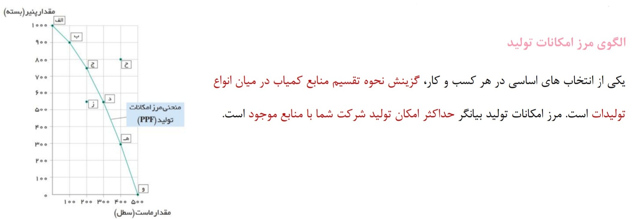 - مرز امکانات تولید نشان دهنده حداکثر امکان تولید شرکت با منابع موجود است.