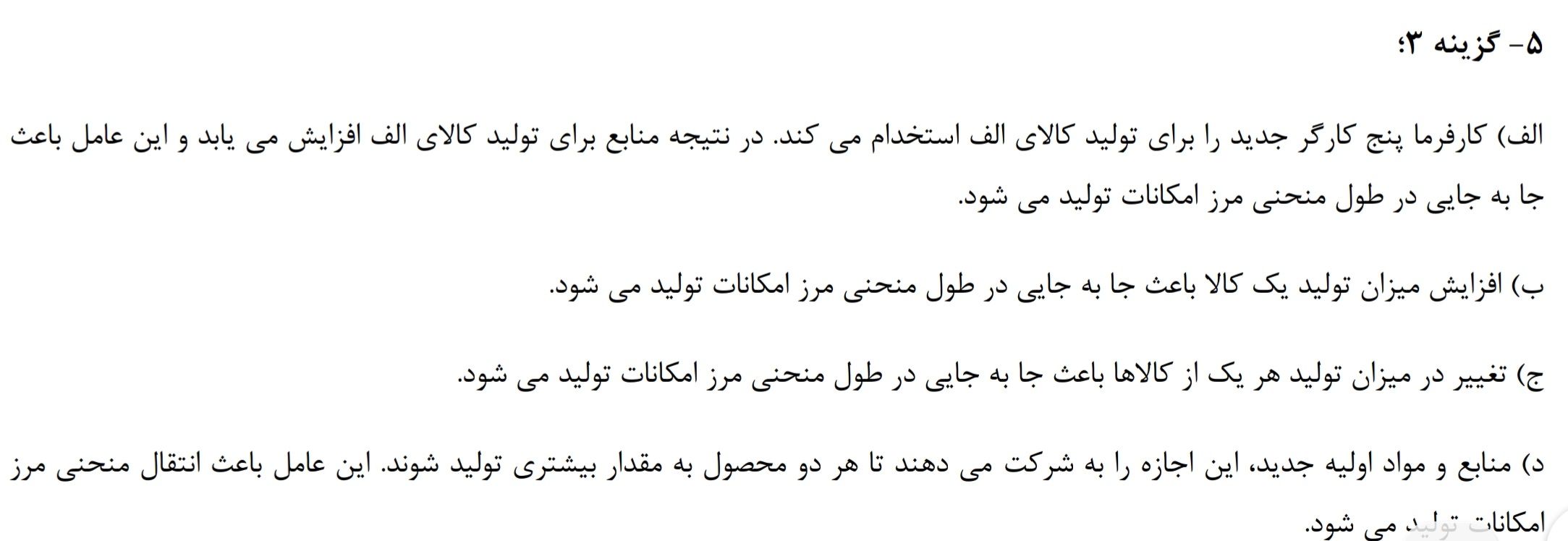 2) الف) انتقال منحنی مرز امکانات تولید ب) جا به جا شدن در طول منحنی مرز امکانات تولید ج) انتقال منحنی مرز امکانات تولید د) انتقال منحنی مرز امکانات تولید