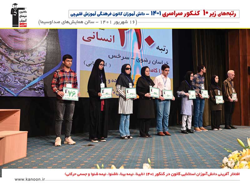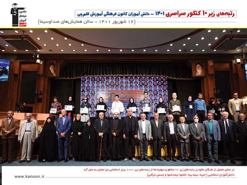 مراسم تجلیل از رتبه های زیر 10 کنکور 1401 در روز چهارشنبه 16 شهریور 1401 در سالن همایش های صدا و سیما برگزار شد. در ادامه تصاویر این مراسم را مشاهده کنید.