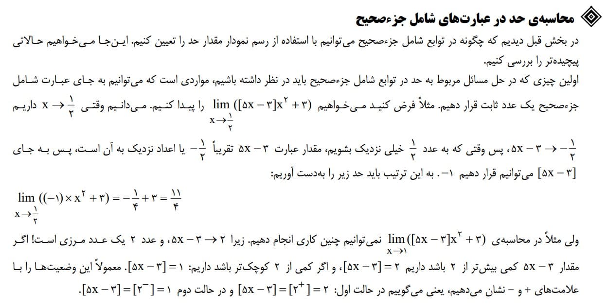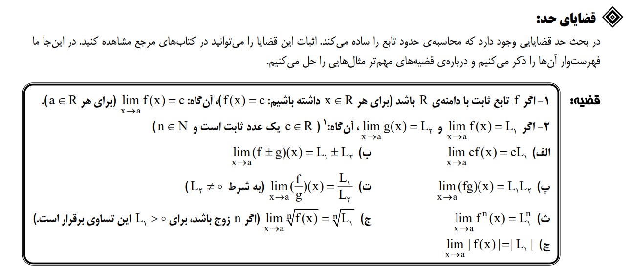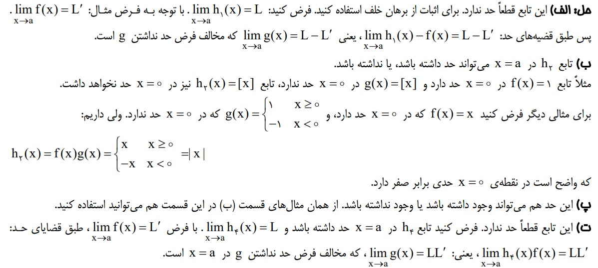 درسنامه فصل 5 حسابان 1 - حد و پیوستگی