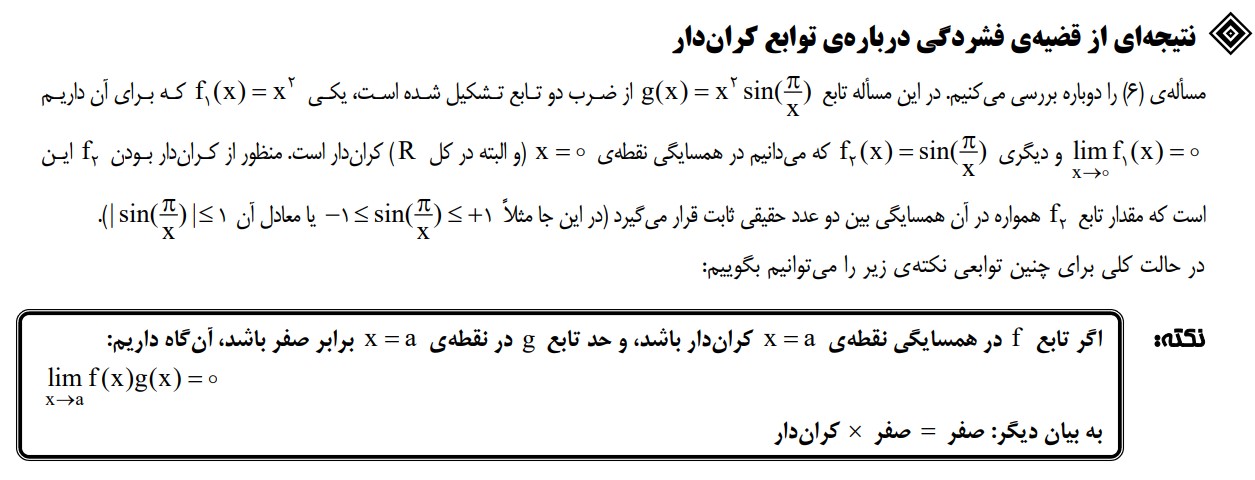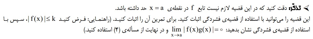 نتیجه از قضیه فشردگی درباره توابع کراندار