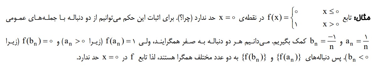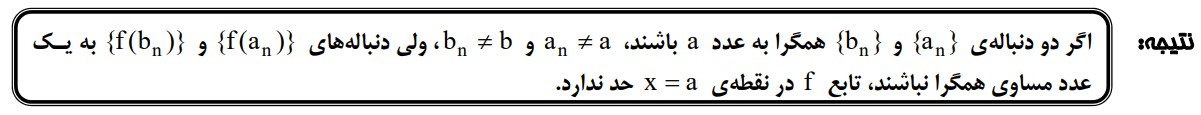 قضیه : عکس قضیه حد و دنباله ها هم برقرار است