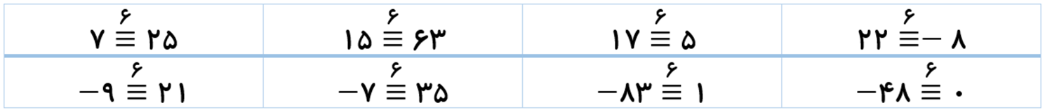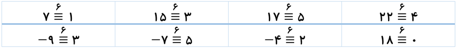 بحث اصلی ما در همنهشتی کار کردن با همین باقیماندههاست! بیاید با یک مثال ساده، شروع کنیم. ![]() با کمی دقت، میشه مفهوم اصلی همنهشتی را بفهمیم! حتی میتونیم اعداد دوطرف همنهشتی را بزرگتر از خود باقیمانده اصلی بذاریم. بذارید واضحتر بگیم. این عملگر همنهشتی که بین دوتا عدد قرار میگیره، به ما خبر میده که این دوتا عدد در تقسیم بر عدد پیمانه (در مثال بالا عدد6) باقیمانده برابر دارن. ![]() |