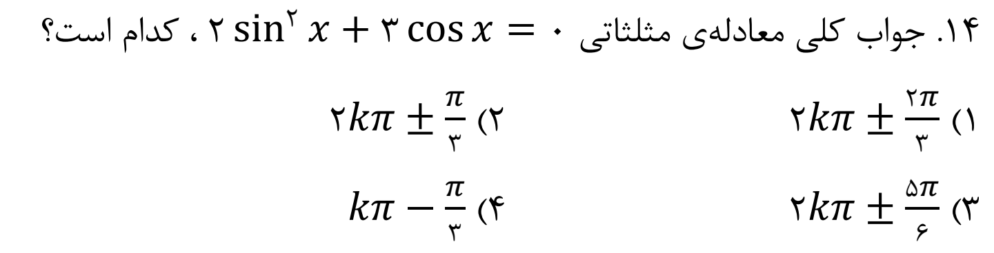 معادلات مثلثاتی-حسابان دوازدهم-درسنامه+تست-مهدیه امین