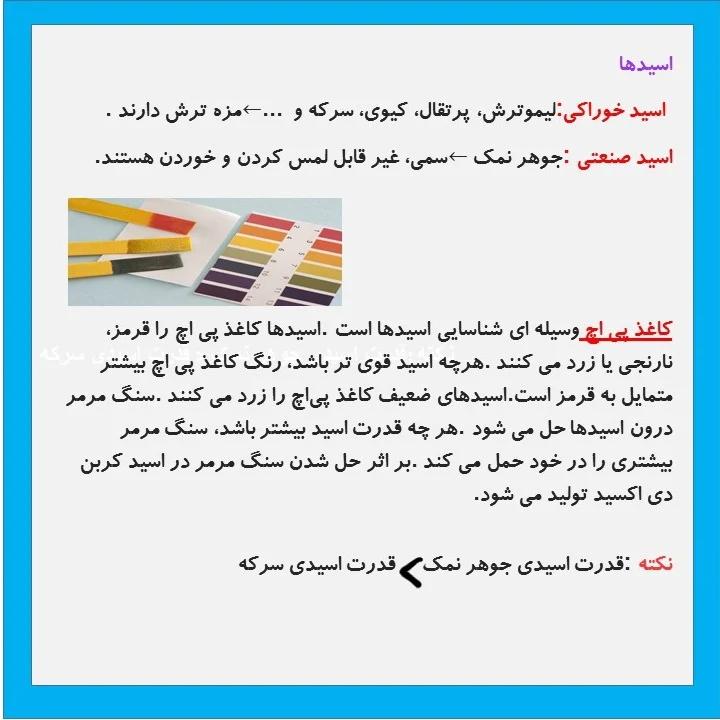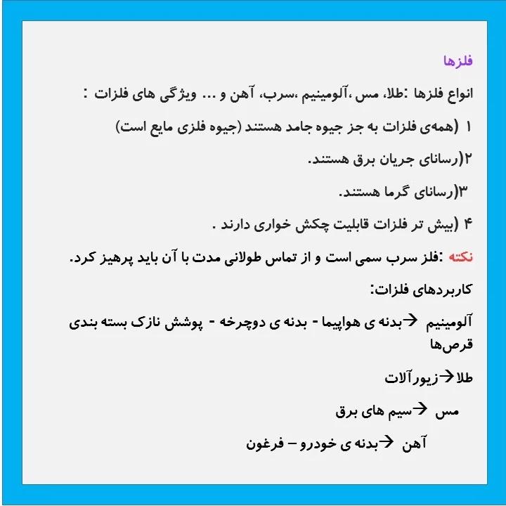 فلزها،اسیدها _درسنامه علوم ششم دبستان_فاطمه حلاجیان
