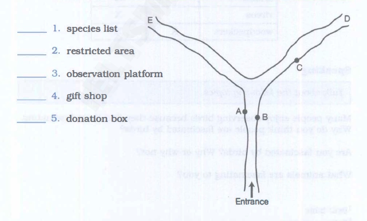 ابتدا شکل زیر و سوالات 1 تا 5 را ببینید. سپس فایل صوتی را اجرا نمایید و حین شنیدن فایل صوتی پاسخ سوالات (موقعیت مکانهای خواسته شده) را باید پیدا کنید. بعد از اتمام فایل صوتی شما باید جواب سوالات را دقیقا مطالبق آنچه که در فایل صوتی شنیده اید یادداشت کرده باشید.