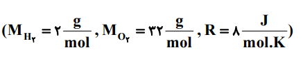 مخلوطی از گاز کامل اکسیژن و هیدروژن در محفظه ای به حجم 144 لیتر قرار دارد . فشار مخلوط گاز 10^5 پاسکال و دمای آن 27 درجه سانتی گراد است . اگر جرم گاز 132 گرم باشد ، چند مول گاز اکسیژن در ظرف موجود است ؟