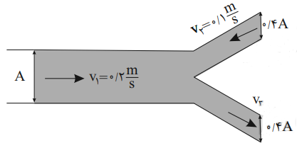 با توجه به شکل مقابل که مسیر عبور شاره ای تراکم ناپذیر با جریان لایه ای در حالت پایا را نشان می دهد ، تندی v3 چند متر بر ثانیه است ؟