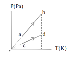 شکل زیر نمودار ( P – T ) یک مول گاز کامل را طی دو فرایند مجزای ab و cd نشان می دهد . به ترتیب از راست به چپ حجم گاز و تغییر انرژی درونی گاز در فرایند ab نسبت به فرایند cd چگونه است ؟