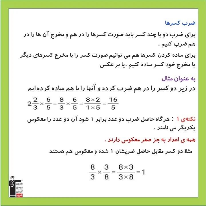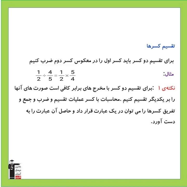 ضرب و تقسیم کسرها _ درسنامه ریاضی ششم دبستان_فاطمه حلاجیان