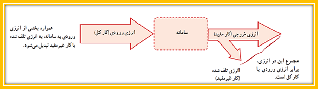 وقتی وسیله ای کار می کند ، نمی تواند تمام انرژی که دریافت می کند را به کار مفید تبدیل می کند، مثلا وقتی یک اتومبیل کار می کند ، تمام انرژی شیمیایی بنزین تبدیل به انرژی جنبشی نمی شود و بخشی از آن به انرژی های ناخواسته ای مانند گرما تبدیل می شود و به صورت اصطکاک و یا از اگزوز خودرو تلف می گردد.
