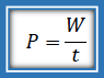 فرمول توان: اگر وسیله ای در مدت زمان t مقدار W کار انجام دهد ، توان وسیله از رابطه زیر بدست می آید: