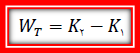 پ:قضیه کار و انرژی جنبشی : کار کل انجام شده روی یک جسم برابر با تغییر انرژی جنبشی آن جسم است، اگر انرژی جنبشی جسم در حالت آغازی و پایانی 1 و 2 باشد کار کل انجام شده به صورت زیر بدست می آید: