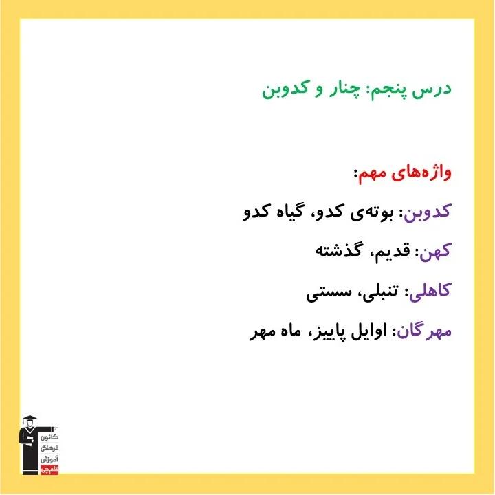 چنار و کدوبن _درسنامه فارسی پنجم دبستان 8 مهر_فاطمه حلاجیان