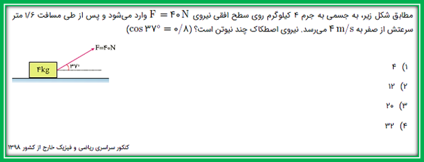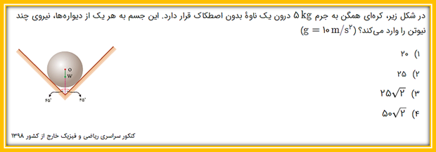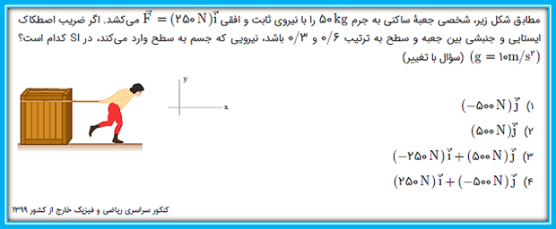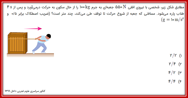 پاسخ تشریحی: گزینه صحیح:2 گزینه دام:1 بررسی تست: در تندی حدی،نیروی خالصی به جسم وارد نمی شوئد و طبق قانون اول نیوتن با تندی ثابت به حرکت خود ادامه می دهد. بررسی دام: دانش آموز اگر بر مفاهیم و مطلب تندی حدی تسلط کافی نداشته باشد در این مدل تست ها در دام تست قرار می گیرد.(توصیه من:خواندن مو به موی کاب درسی) |