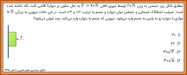 | جرم یک جسم در همه جا..........بوده و وزن آن در همه جا...........است. 1)ثابت-متغییر 2)متغییر-ثابت 3)ثابت-ثابت 4)متغییر-متغییر |