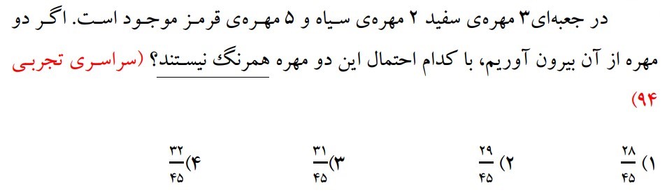 آزمونک مرور فصل 7 ریاضی دهم - آمار و احتمال