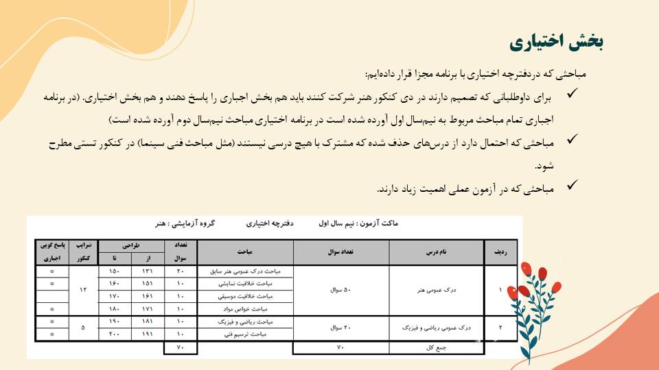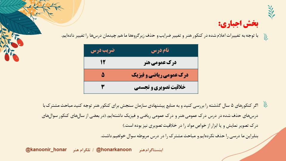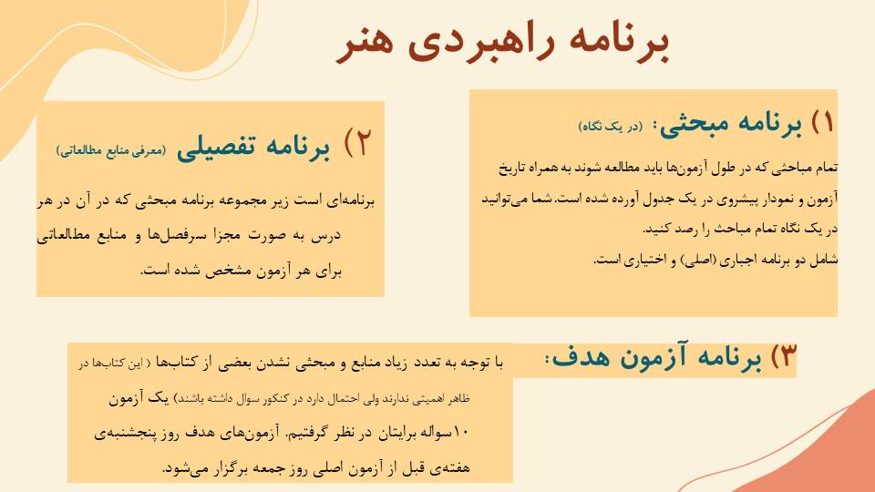 نکات کلی که نیاز دارید در مورد برنامه و آزمونهای هنر کانون بدانید را در این مطلب آوردهایم. موارد تکمیلی مربوط به کنکور هنر را میتوانید در مقاله " نکاتی که برای شرکت در کنکور هنر باید بدانید" مطالعه کنید.