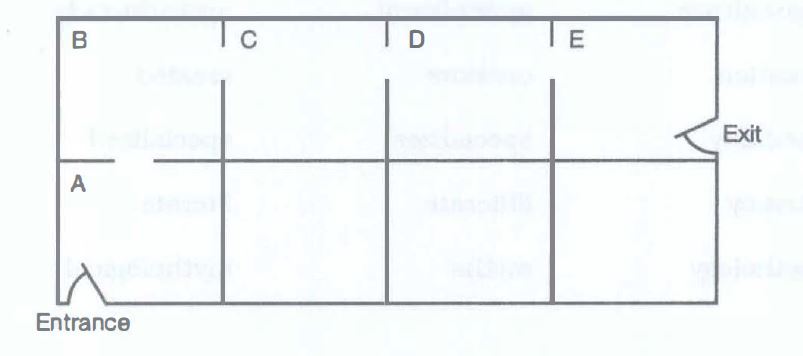 Listen to the talk. Look at the map below labeled A-E. Look at the list of places and write the correct letter, A-E, next to numbers 1-5. j