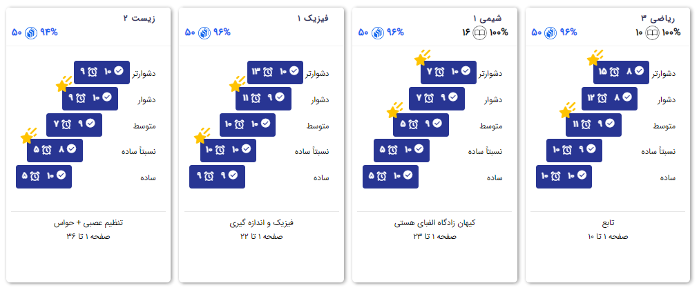 4) در پلکان میتوانید با توجه به وضعیت علمیتان تمرین انتخاب کنید.