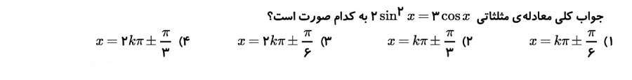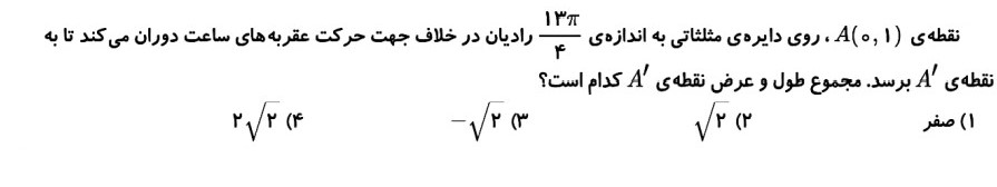 آزمونک مرور فصل 4 حسابان یازدهم - مثلثات