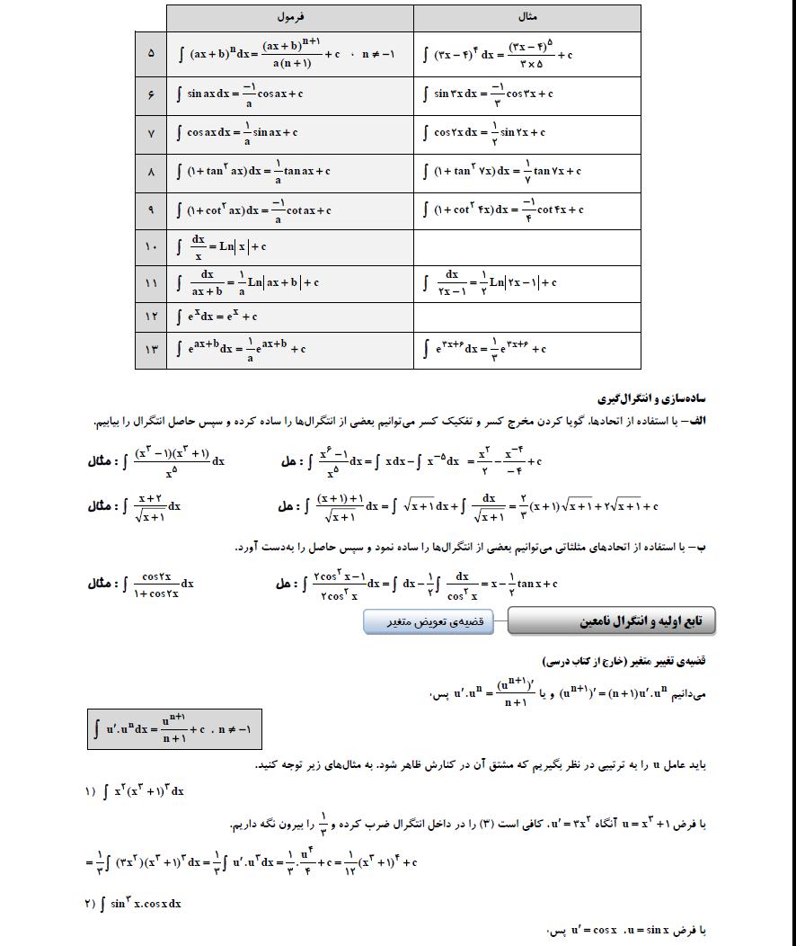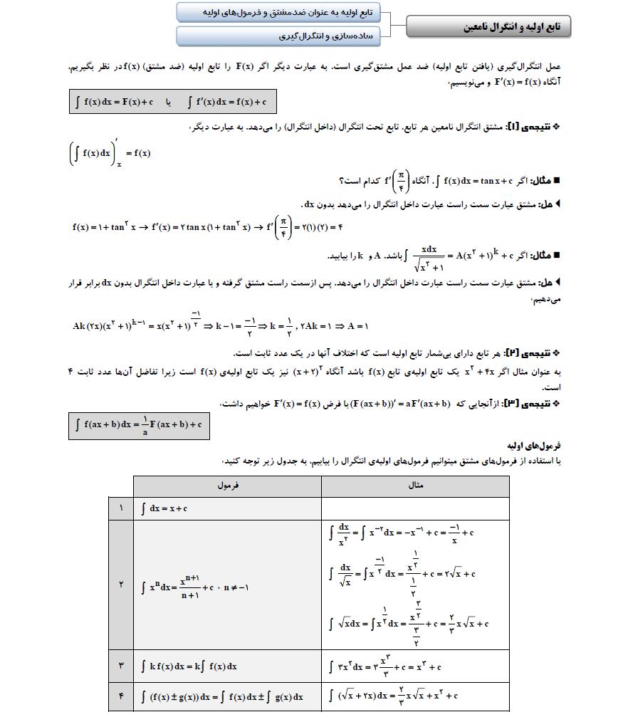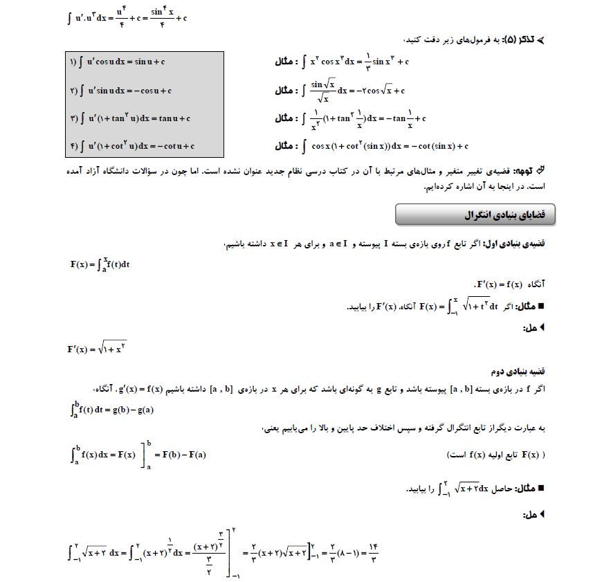 جمعبندی نکتههای مبحث انتگرال-ریاضی تجربی