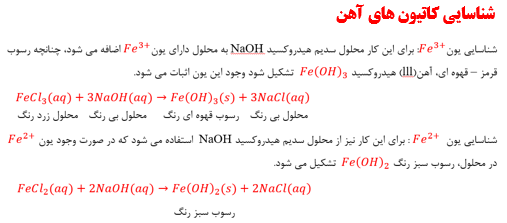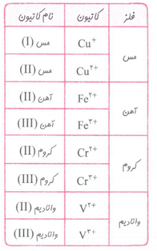 برخی از فلزهای واسطه که بیش از یک نوع کاتیون دارند.