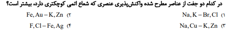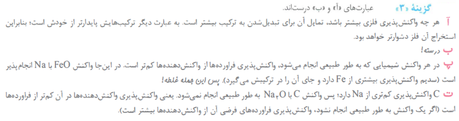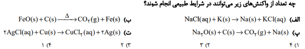 در هر واکنش شیمیایی که به طور طبیعی انجام می شود، واکنش پذیری فراورده ها از واکنش دهنده ها کمتر است؛ پس اگر یک واکنش به ما بدهند که در دو طرفش به عنصر آزاد وجود داشته باشد و بگن که این واکنش به طور طبیعی انجام میشه، ما خیلی سریع می تونیم واکنش پذیری دو عنصر آزاد در دو طرف معادله را با هم مقایسه کنیم: