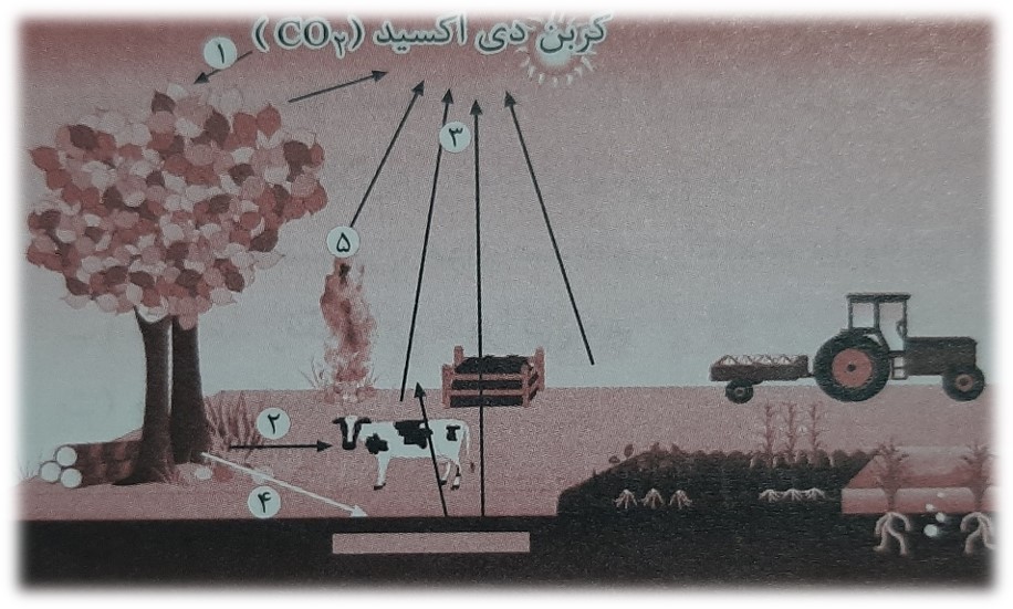 شکل زیر، طرح ساده ای از چرخه کربن را نشان میدهد: