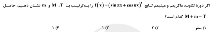 سوال 1 : تعیین حداکثر و حداقل در تابع