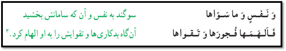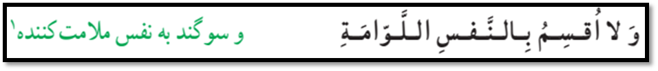 5) نفس لوامه و وجدان اخلاقی: کلید واژهها : واکنش در مقابل گناه و زشتی (به علت گرایش به خوبی و نیکی) – سرزنش خود پس از آلوده شدن به گناه – سوگند خداوند به نفس سرزنشگر.