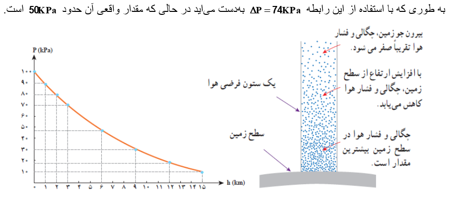 اختلاف فشار قله دماوند و سطح دماوند را نمیتوان از این رابطه بهدست آورد. چون تغییر چگالی زیاد است.