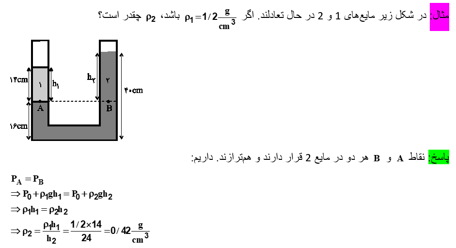 توجه: اصل نقاط همتراز برای نقاط درون یک مایع صادق است ولی اگر در ظرفی چند مایع مختلف داشته باشیم، فشار نقاط همتراز که در دو مایع مختلف هستند، برابر نیست!