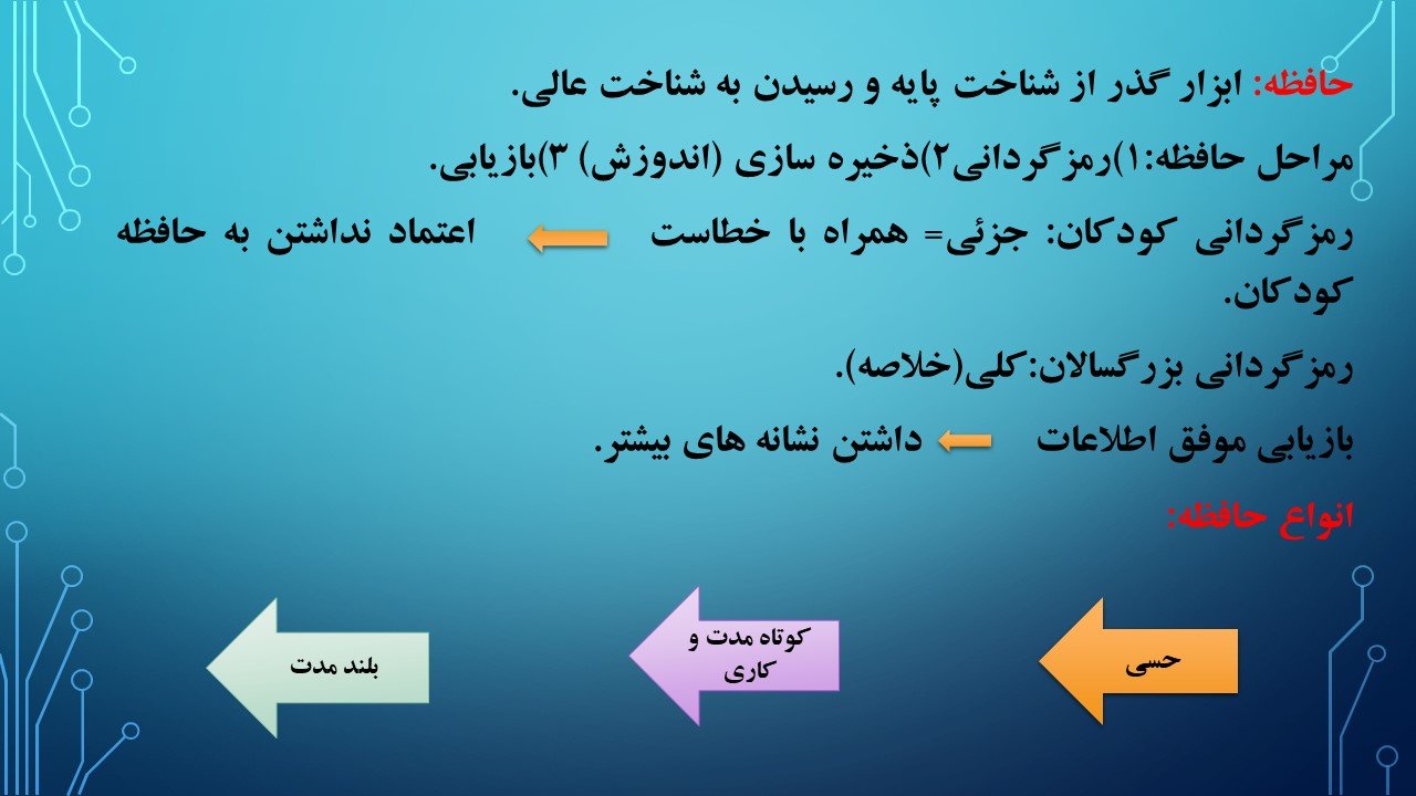 ساده ترین شیوه انتقال اطلاعات از حافظه کوتاه مدت به بلند مدت: بازگویی و تمرین.