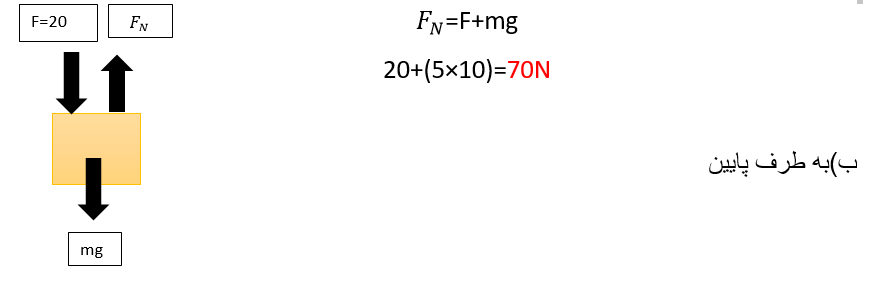 ب)واکنش نیروی عمودی سطح در چه جهتی است؟